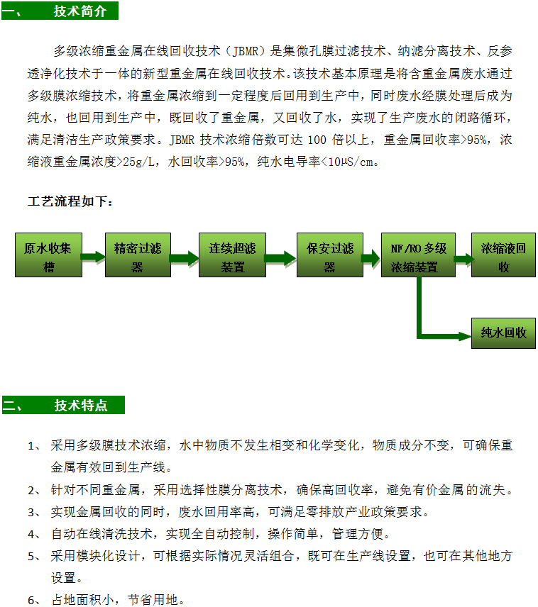 多級濃縮重金屬在線回收技術(shù)(JBMR)